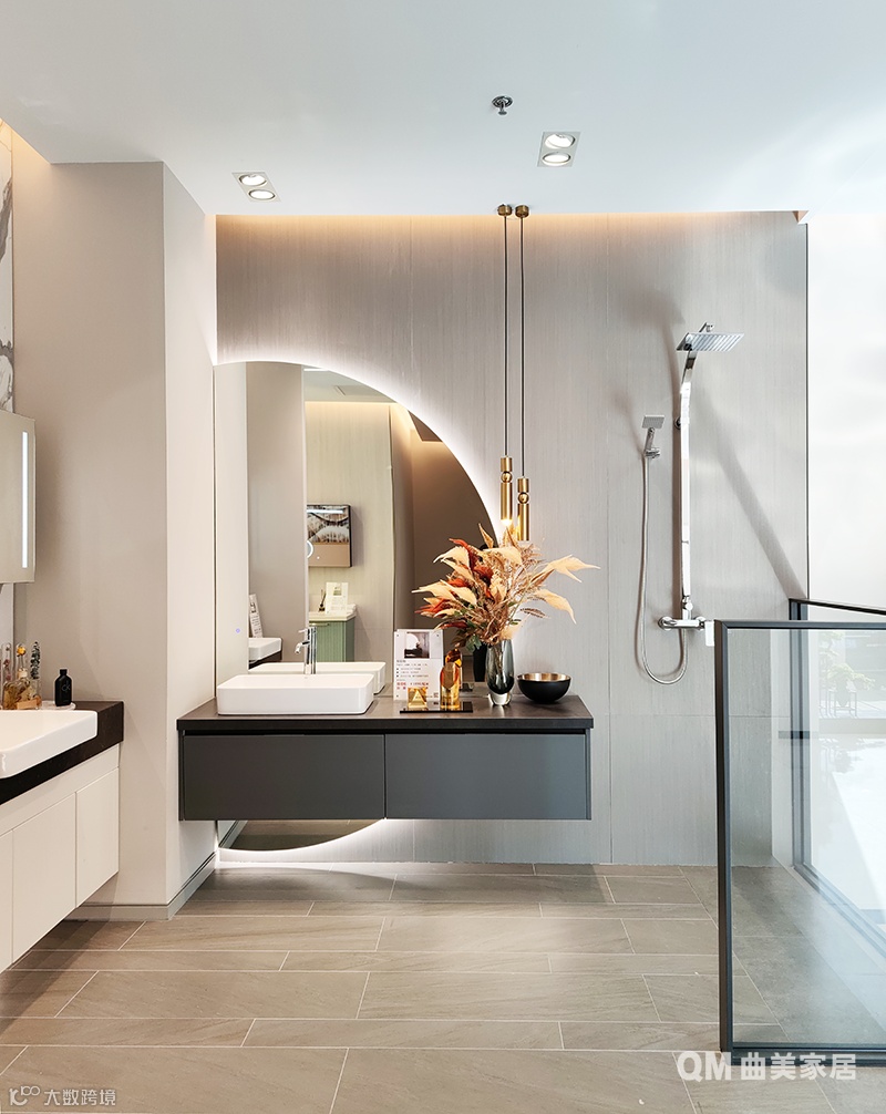 洗手间的双台盆设计,完美解决了高峰期的洗漱“挤兑”问题,我哪怕再复杂的护肤流程,在这里都能轻松搞定。