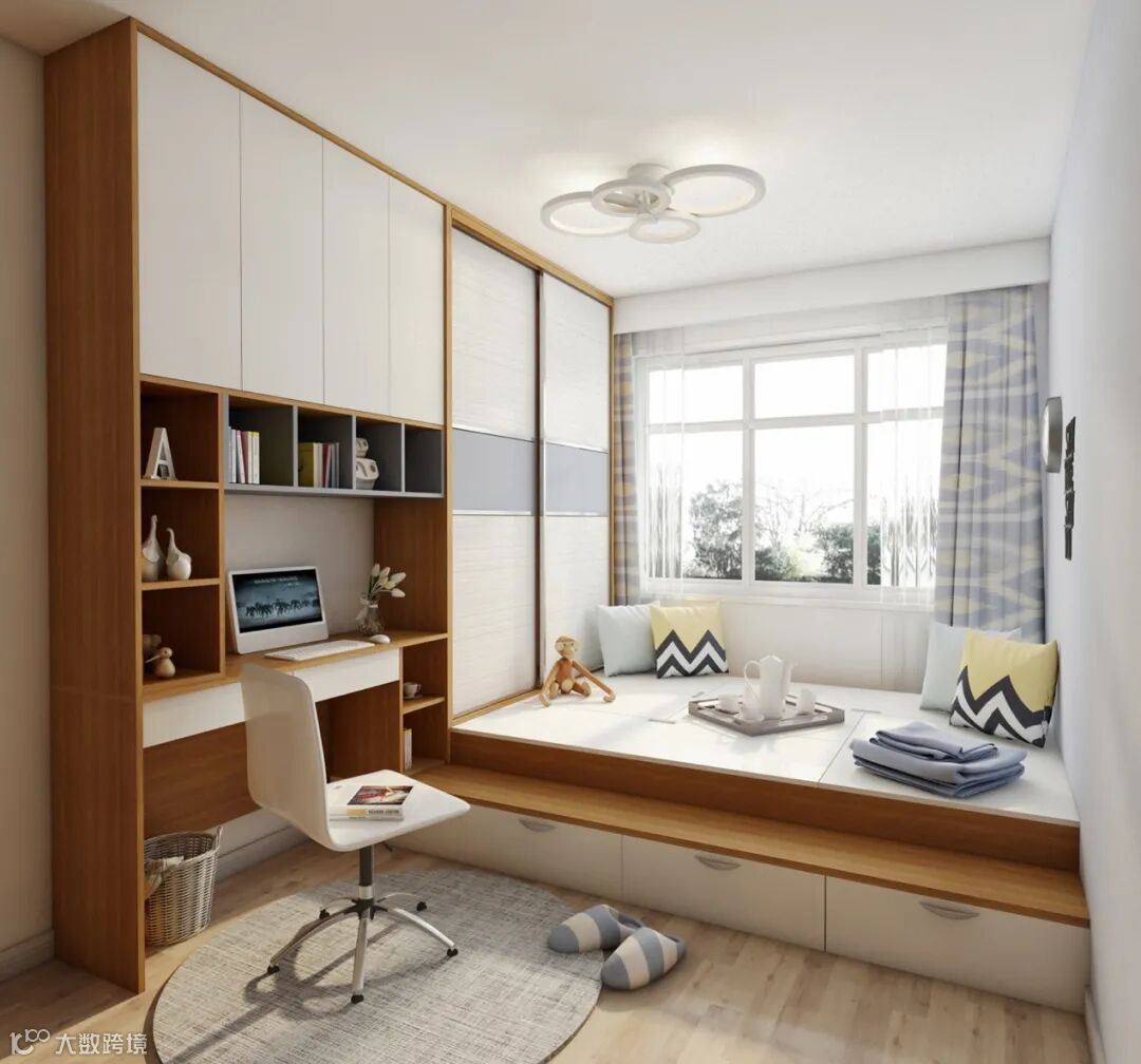 如果你家没有奢侈到可以单独装修一间书房,那么可以考虑将一间客卧装成书房榻榻米。