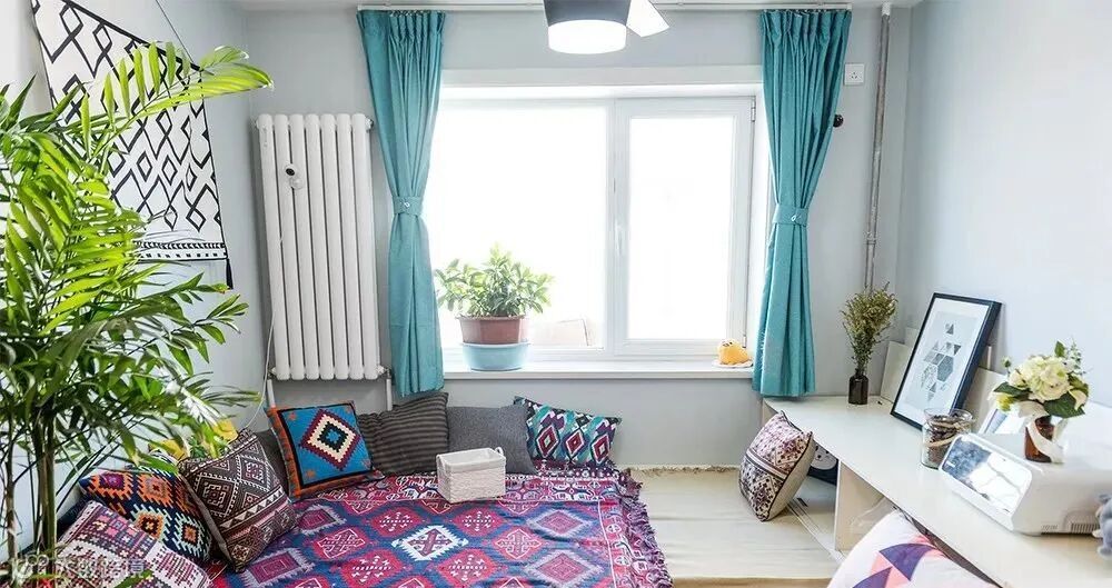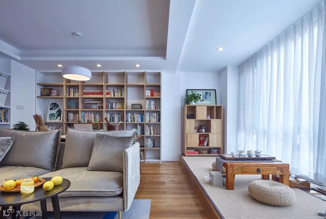 对于面宽比较长的客厅,可以在中部隔一堵矮墙,将窗边的一块区域打造成榻榻米会客区,既舒适又雅致。最常见的也是最简易的办法就是在客厅靠窗的一面,增设榻榻米区域,不但采光好,还能在窗边谈天畅饮,小日子不要太舒坦!