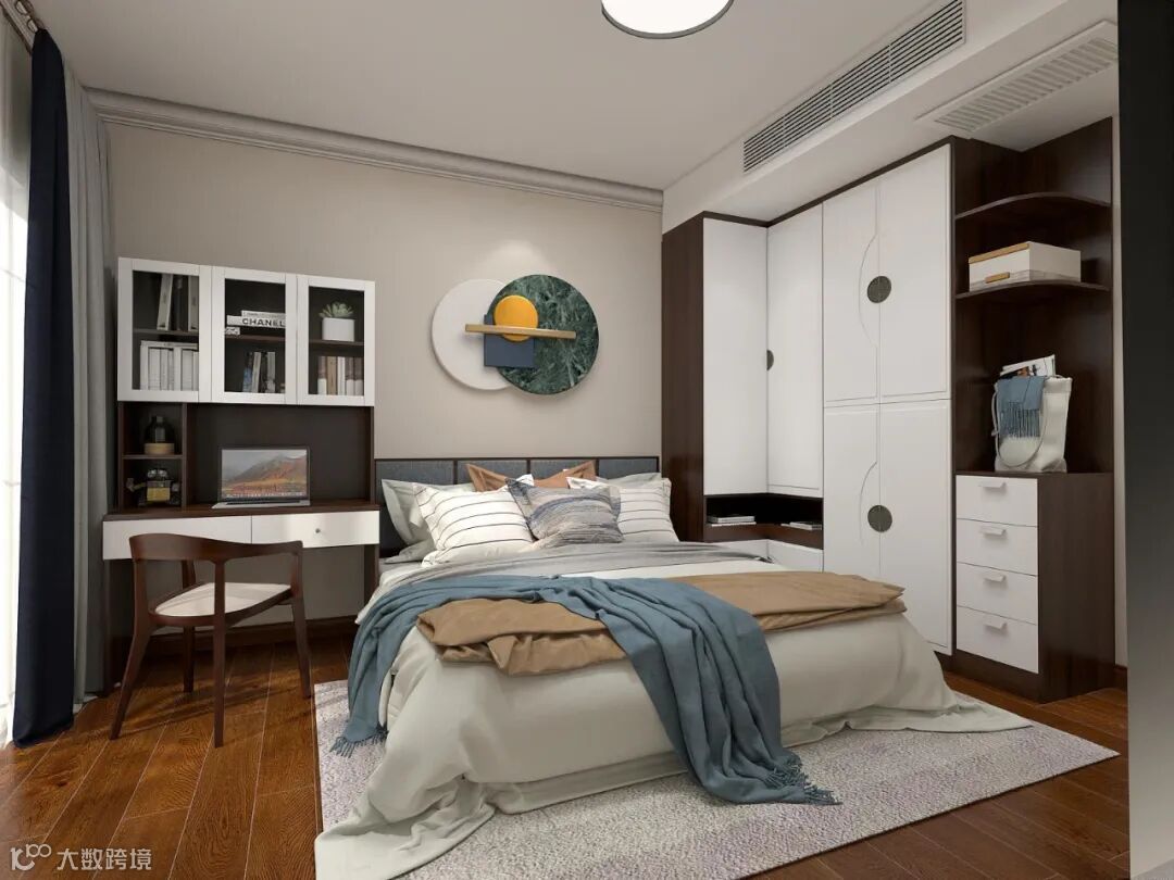 客餐厅一体设计,看似漫不经心的木材、皮革、金属、大理石等材料混搭在一起,将不同风格的元素一同收纳。餐桌造型干净利落,桌面采用天然大理石,搭配自然实木质感的桌腿,呈现出差异与秩序之美。餐椅以前卫的造型,诠释融贯东西之美,皮料质感和木材之间的完美契合,能为家居生活提升视觉享受。