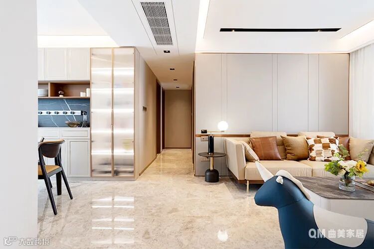 客厅背景墙打造,和定制的通顶餐边柜是客餐厅的两大亮点!