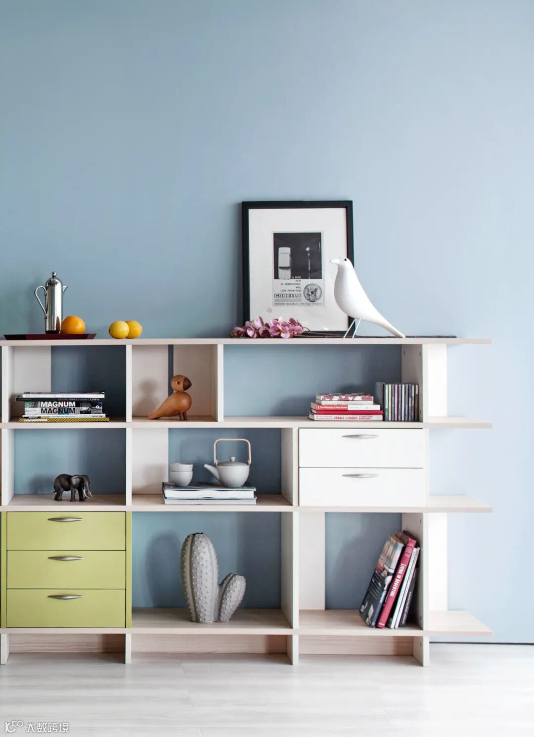 作为后退色,蓝色能使物体看上去比实际距离远,可以减少压迫感,具有放大空间的效果,因此也是小户型钟爱的色彩。