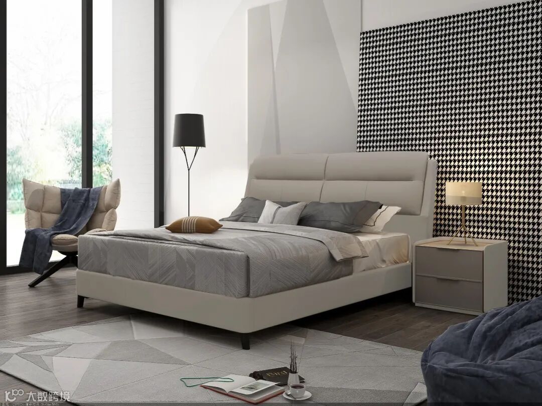 精致软包皮床,选用暖灰色优质黄牛皮,精湛拉布工艺,靠包上下分离;8H卷装式木弹簧,静音承托;高床底设计,便于储物和清洁;实木与软包结合,一个柔软,一个坚硬,带给你舒适感和温暖感。