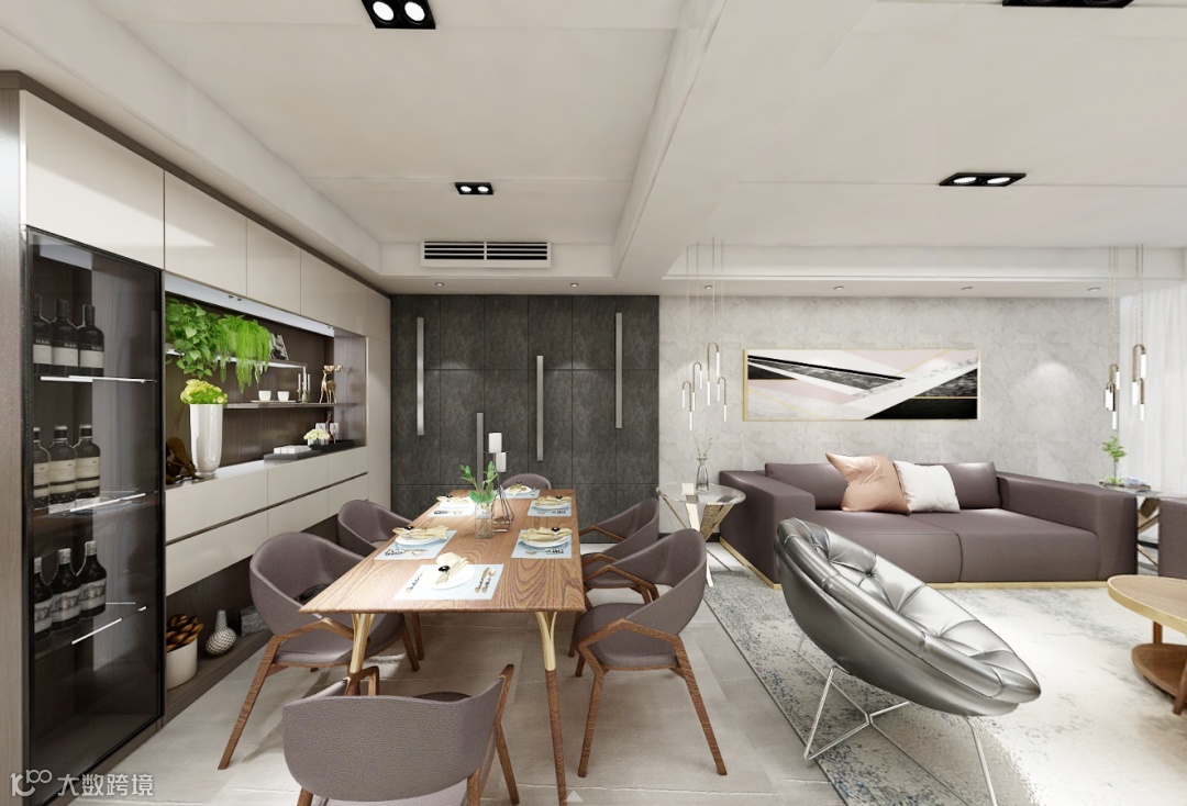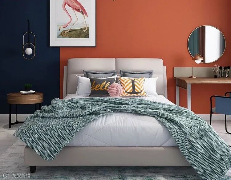 橘色是暖色系中最温暖的颜色,既明朗又充满活力,但橘色的明度和色彩度都很高,可以与灰色、蓝色进行巧妙搭配,为空间带来更多大牌、轻奢的感受。