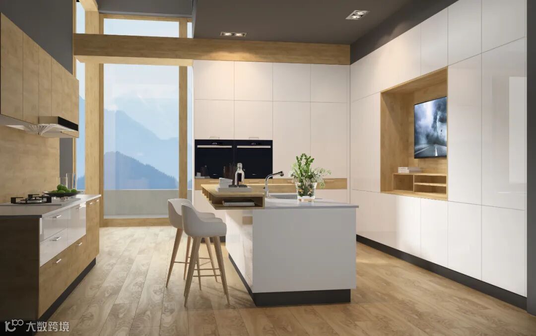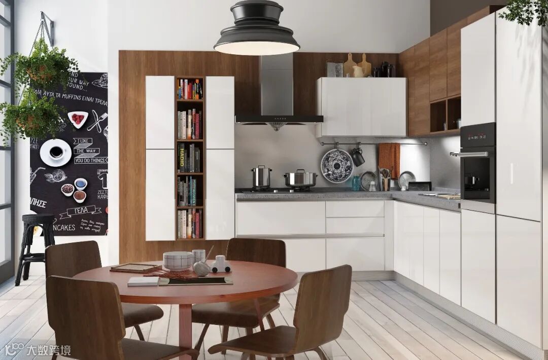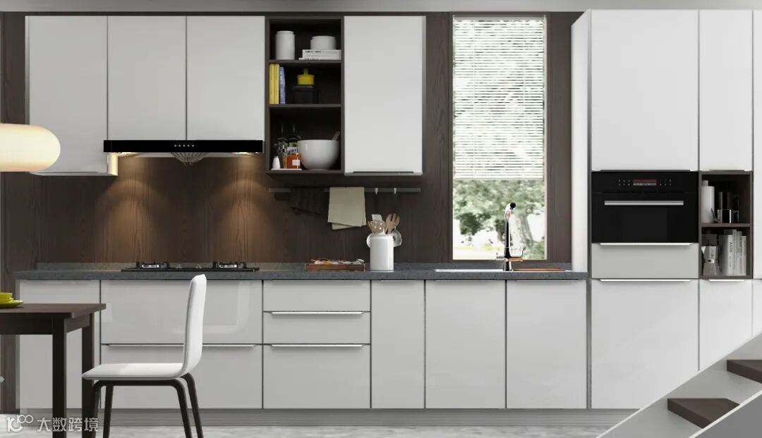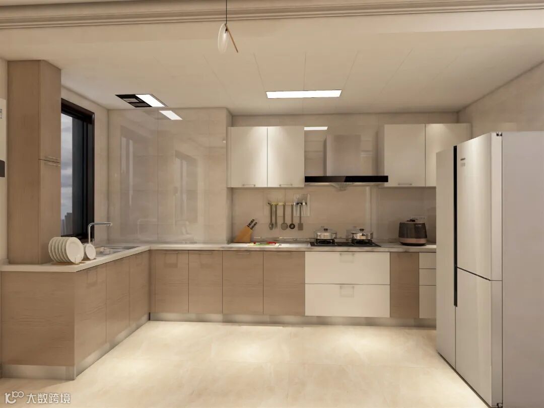 灯光布置:厨房灯光除了满足整个厨房的照明,一个是对洗涤、准备、操作的照明;还需要在吊柜下方布置局部灯光,足够烹饪时使用。
