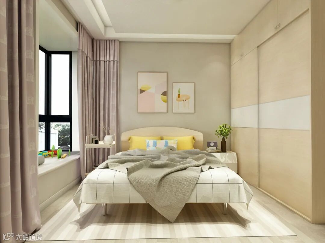 卧室分为休息区、储物区、视听区、休闲区等,整个空间满足了业主不同生活需求,搭配北欧风格的饰品与色彩,端庄中有着别样的活跃感,明亮点缀中又不失稳重大气.