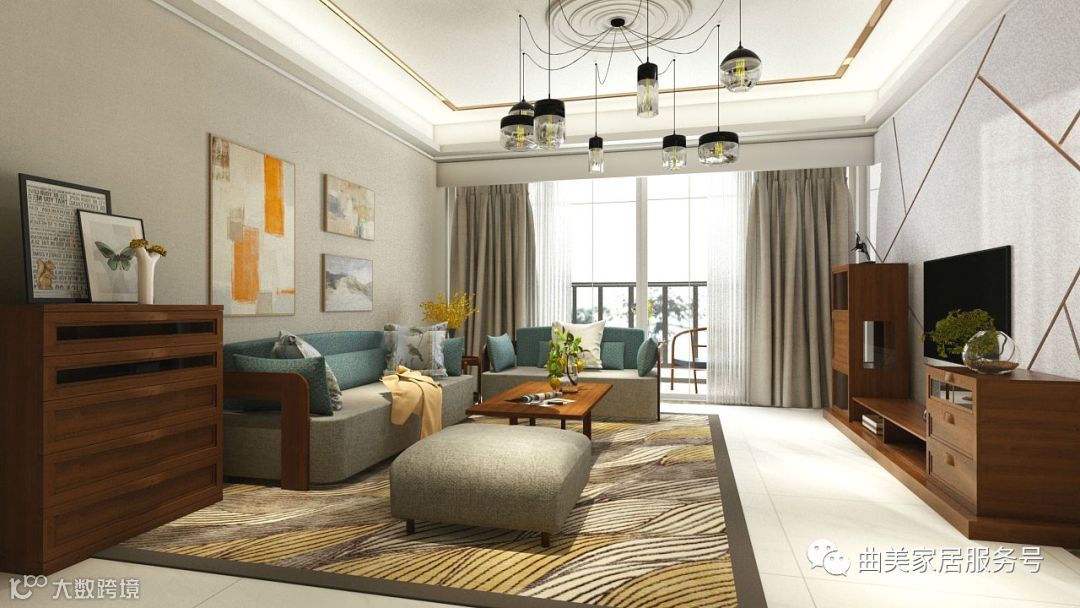 宽敞明亮的客厅,素雅的窗帘,清新大方,简单利落的装修,不矫揉造作,胡桃色的家具,沉稳大气,弯曲的沙发扶手,一气呵成的流线,稳重里不失温柔,蓝灰色的面料点缀其间,平静又舒适。于轻纱帷幔旁安于一隅,感受繁华后的宁静淡然。