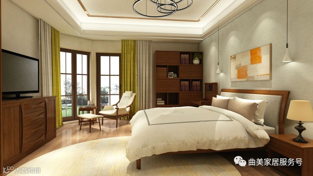 温暖洋溢的卧室,在轻纱笼罩的落地窗旁,和煦的阳光洒在休闲椅上,安然的躺在上面,看云卷云舒,之所以宠辱不惊,那是因为内心并不空虚。真正的美是灵魂的美,由内而外散发出来的内涵,书,怎能离手。电视柜上的蝴蝶结,实木弯曲的床头,细节之处尽显精致,让人移不开视线。