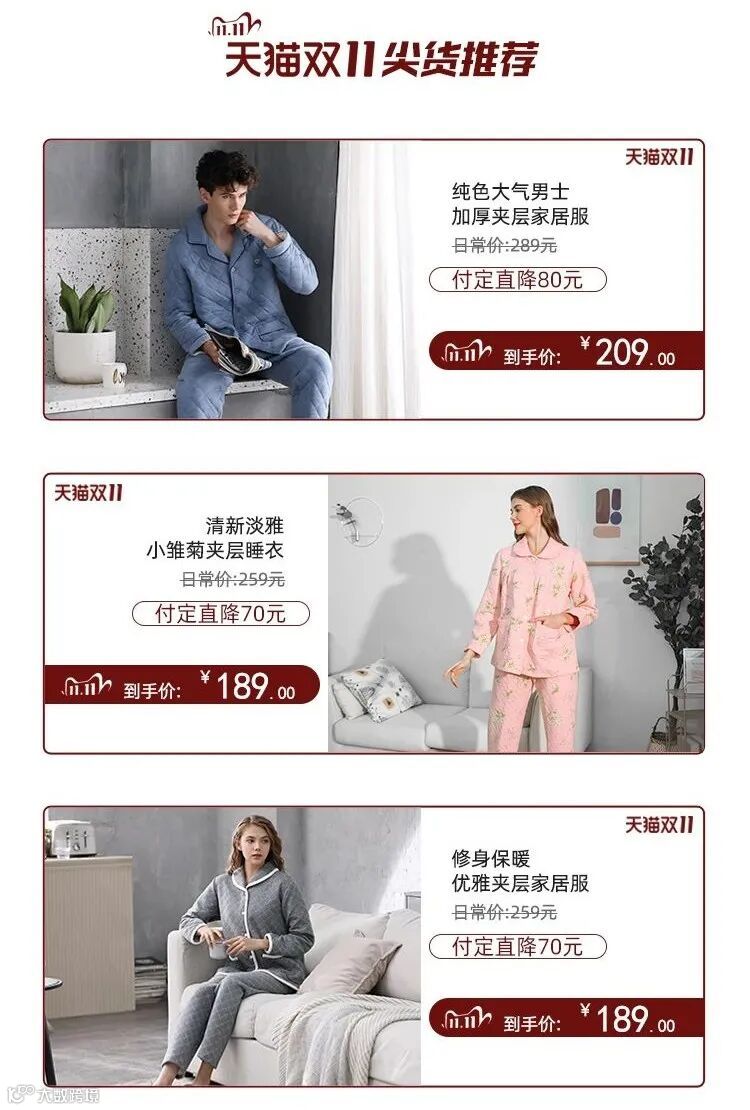 睡衣一件怎么够?抢到7.5折大额券后,再挑选多件预售款一起付定金,11月1日一起付尾款,优惠力度比双11当天更大,买贵可以退差价!