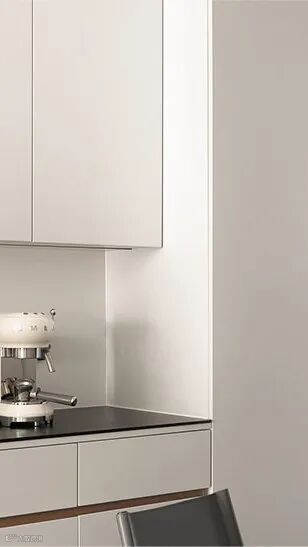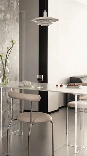 开放式餐厅与客厅居于一条动线,借助吊灯与藏灯吸纳光景,营造出柔和的空间视野与和谐的生活场域。简约清透的空间质感,无声地散发着理性的气质,随着几何、线条、镜面的点缀,丰满了纯白的空间形象。