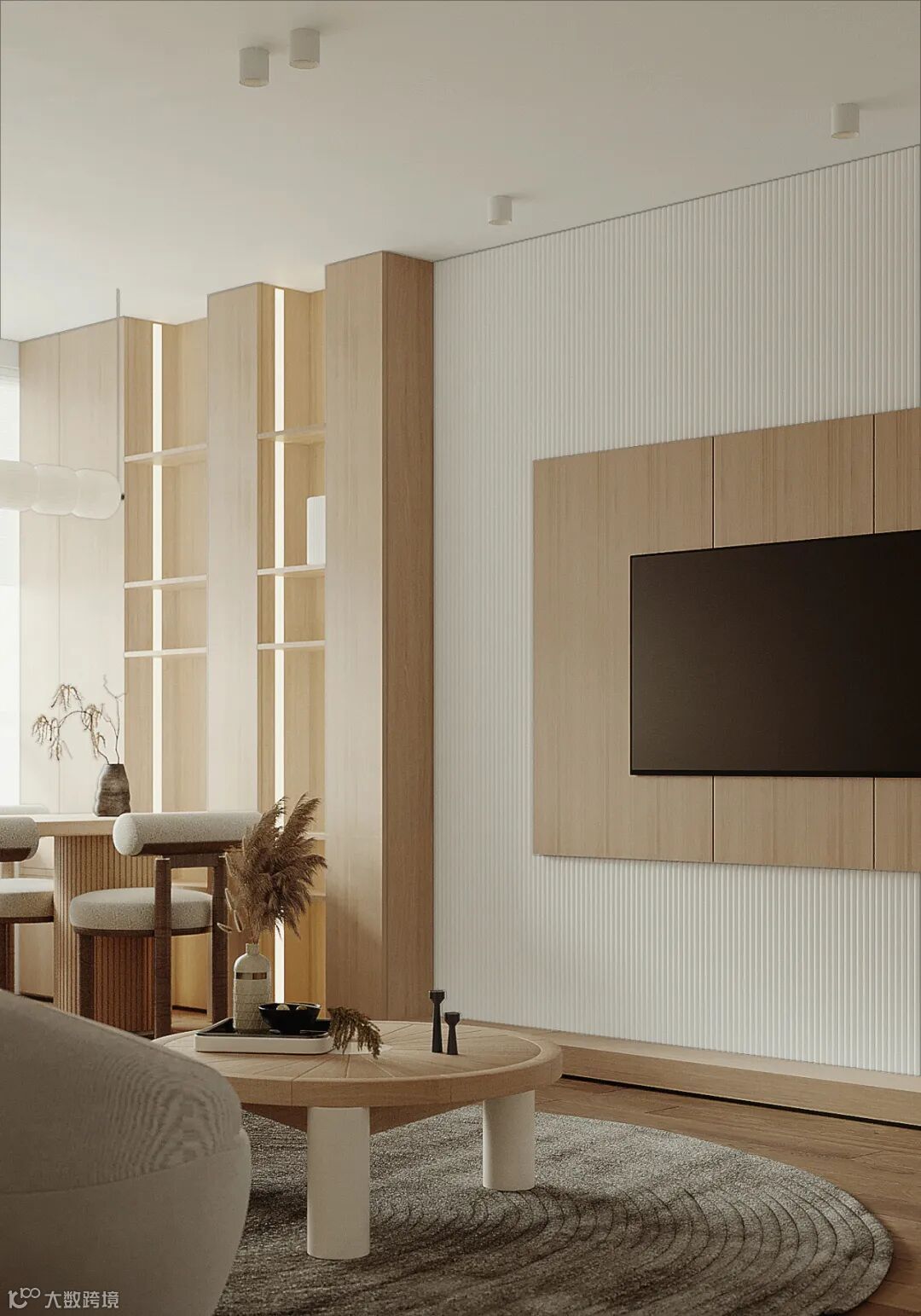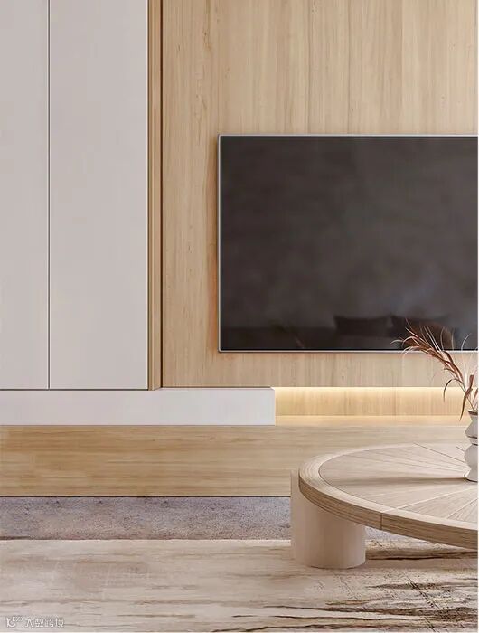 客厅开放式布局,大大增加了空间规则的灵活性,也促进了家人之间更自在亲密的互动。用木元素延续自然气息,木意延伸开来,无形之中形成一种视觉张力,仿佛各个区域相互连接。空间内的色彩给人一种朴实简洁的感觉,在这样低调的底色下,让疲惫的身心放松下来,达到平静柔和的效果。