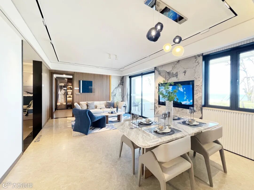 海洋、沙滩和蓝鲸是自然中最令人向往的元素之一。它们所带来的清新、宁静和神秘感,使户主在家中就能感受到水元素自然感和美感,体验大自然的美妙和力量,放松身心,享受生活。