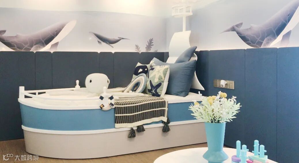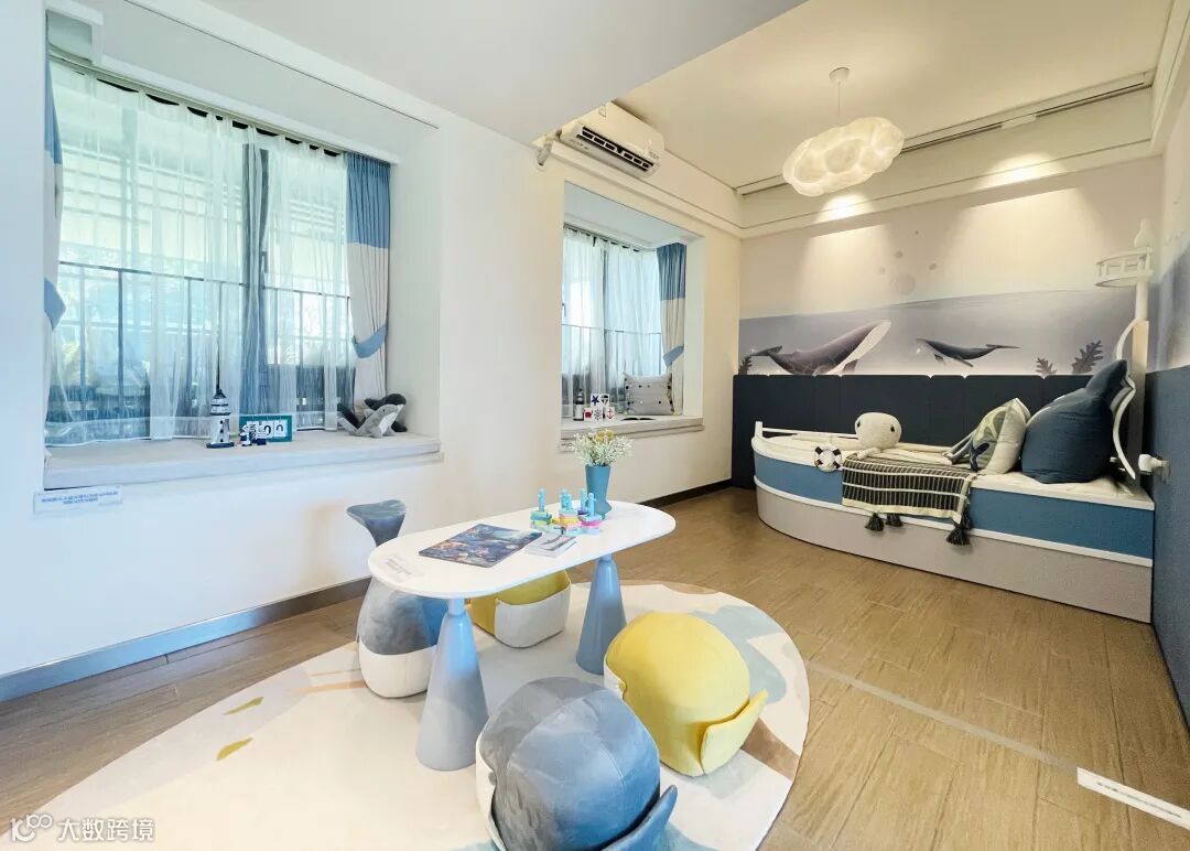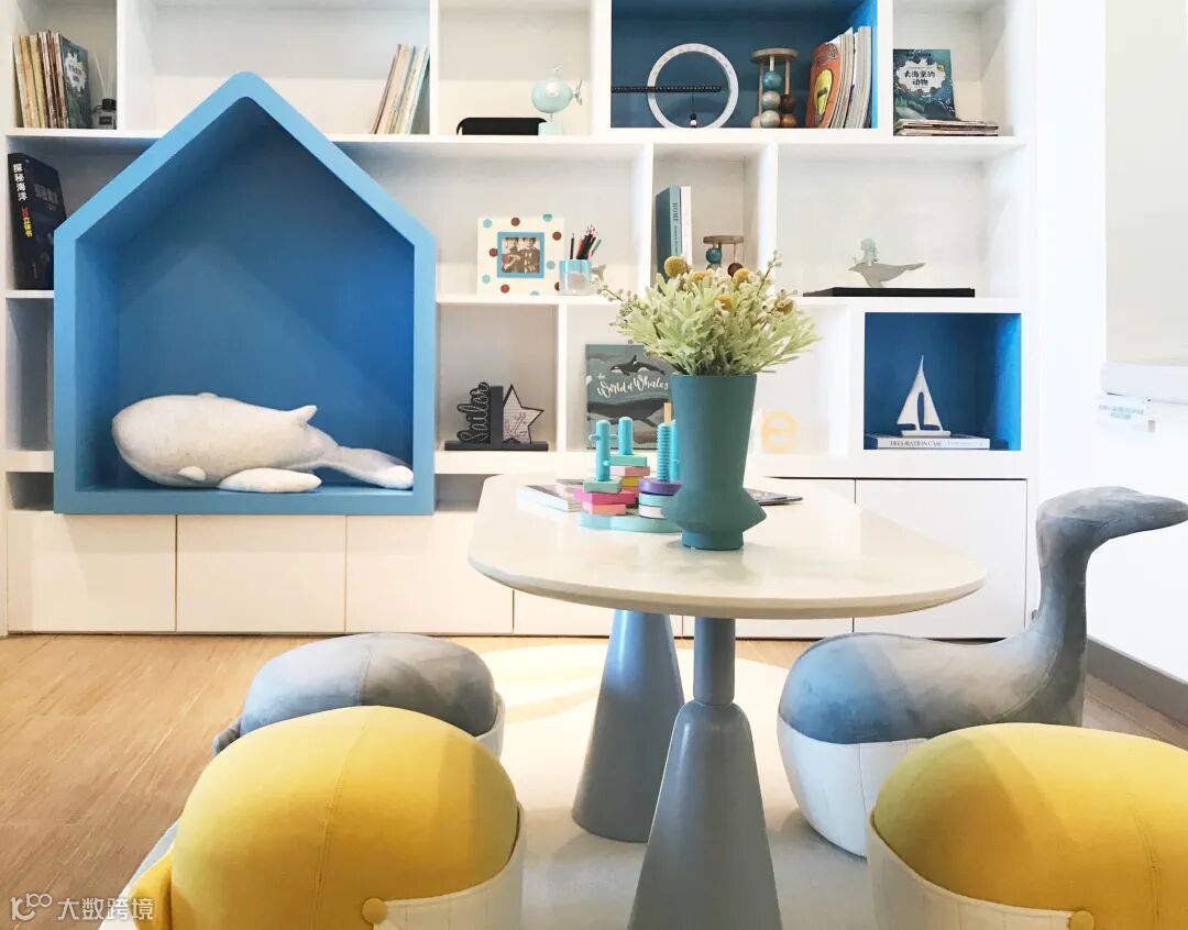 配合水蓝色的船型小床,蓝鲸墙纸及鲸鱼造型座椅为主题元素,不仅为房间带来更多的海洋元素,还为房间增添些许解压放松的气息,教育孩子了解海洋,激发他们对海洋和自然的好奇心和热爱。