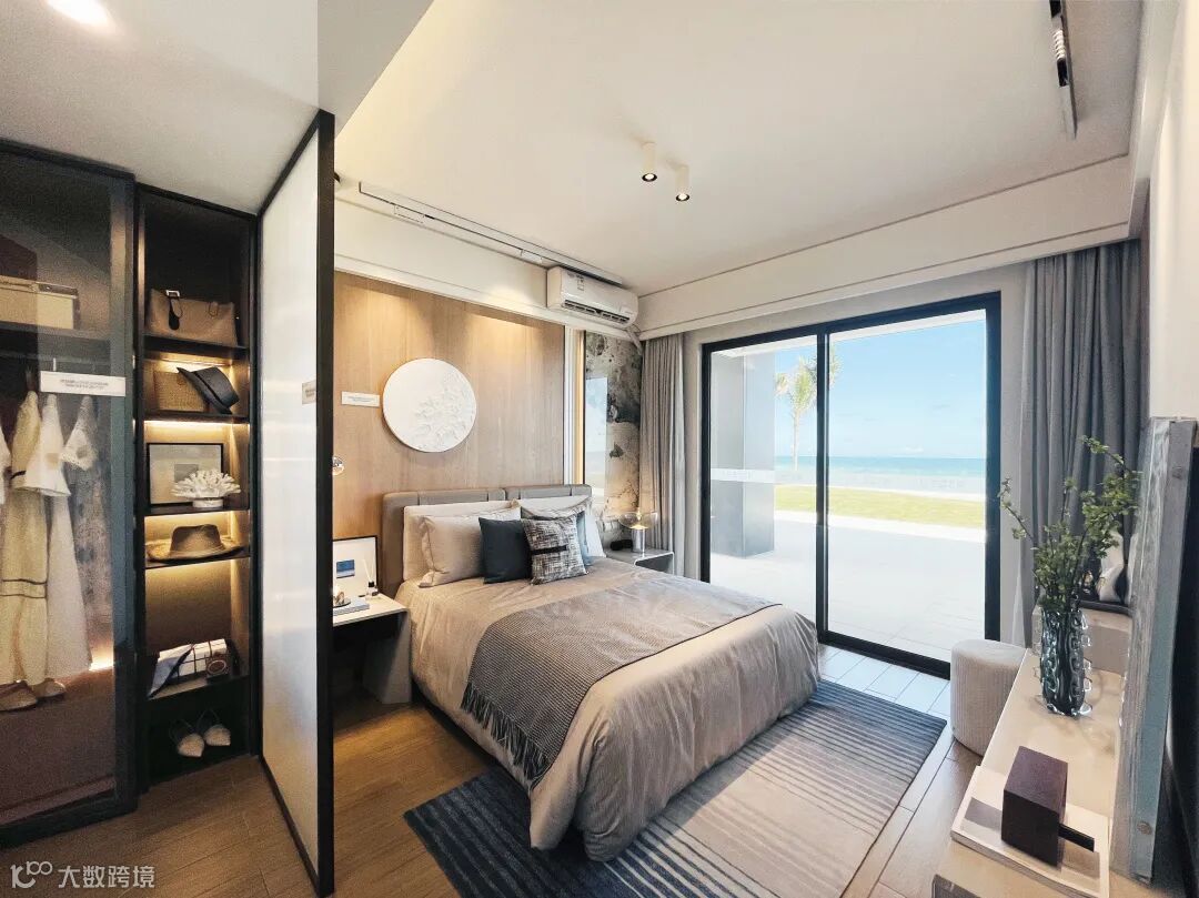 以蓝色、白色和灰色为主色调,让人联想到海洋和云彩。使用天然材料如木材和大理石,带来了自然的质感和纹理,与海洋的质感相得益彰。同时,使用了不锈以增加房间的现代感。