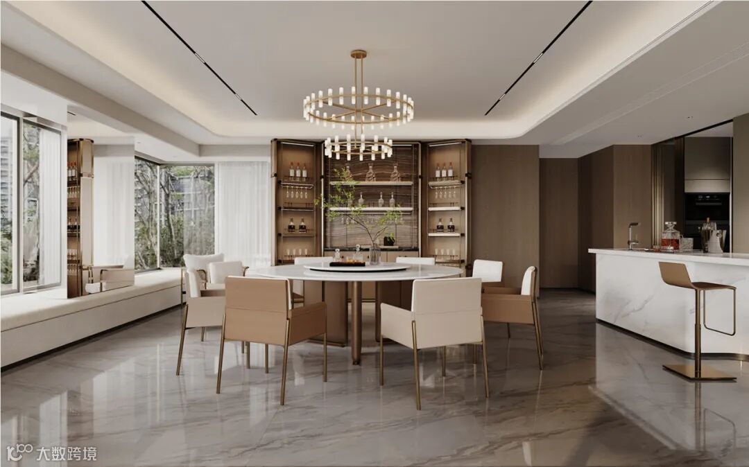 注重空间的流动性和开放性,常用直线条和简洁的几何图形装饰。用高级灰、驼色、象牙白等柔和的色调,以及金色等带有奢华感的锻打金属色。