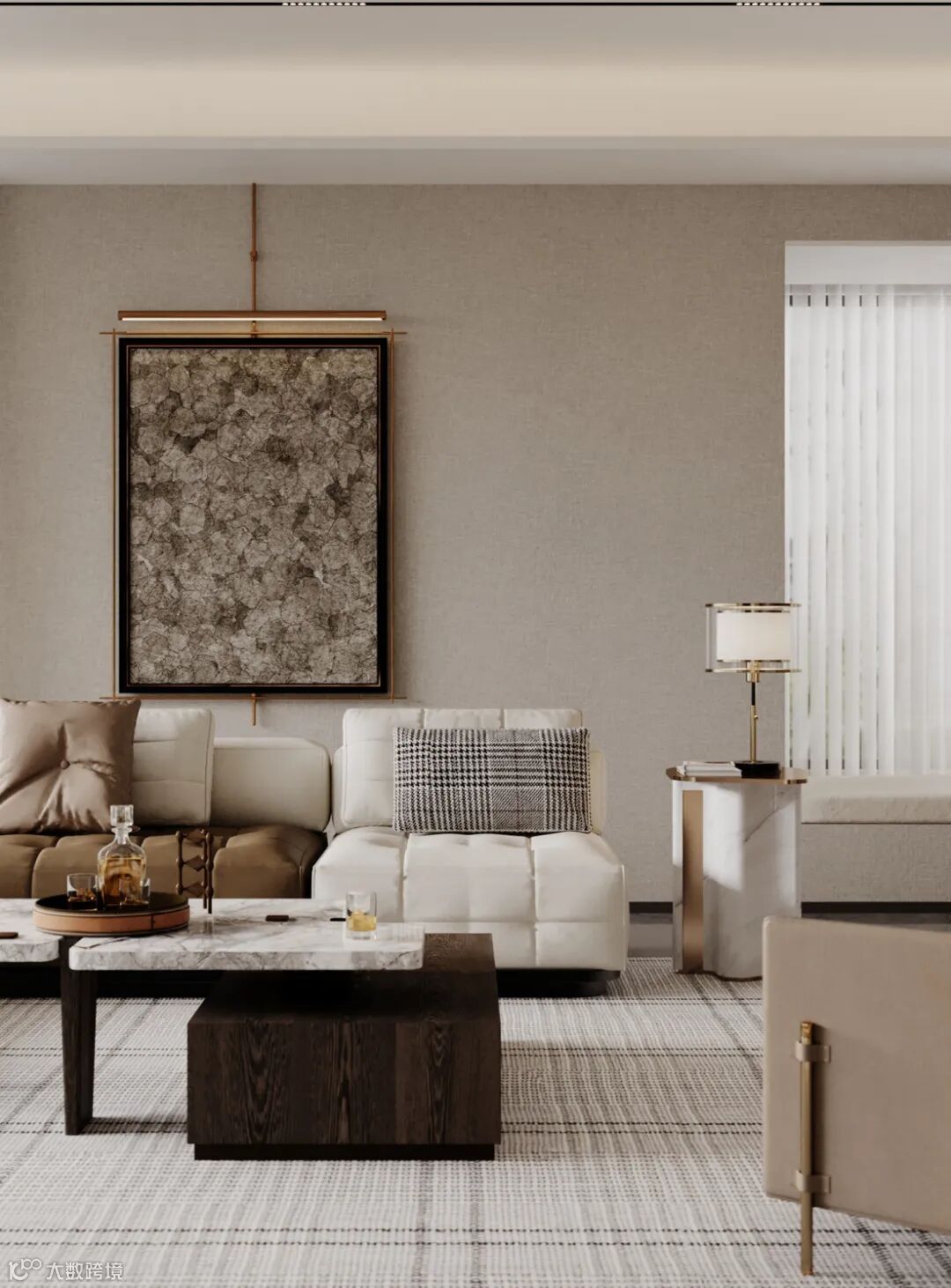 现代轻奢-英奢格调以低调奢华与经典英伦美学为核心,融合黄铜、大理石与皮质等材质,营造中性雅致基调。空间布局融入格纹、古典线条等英伦符号,搭配艺术画作或雕塑,赋予人文深度;