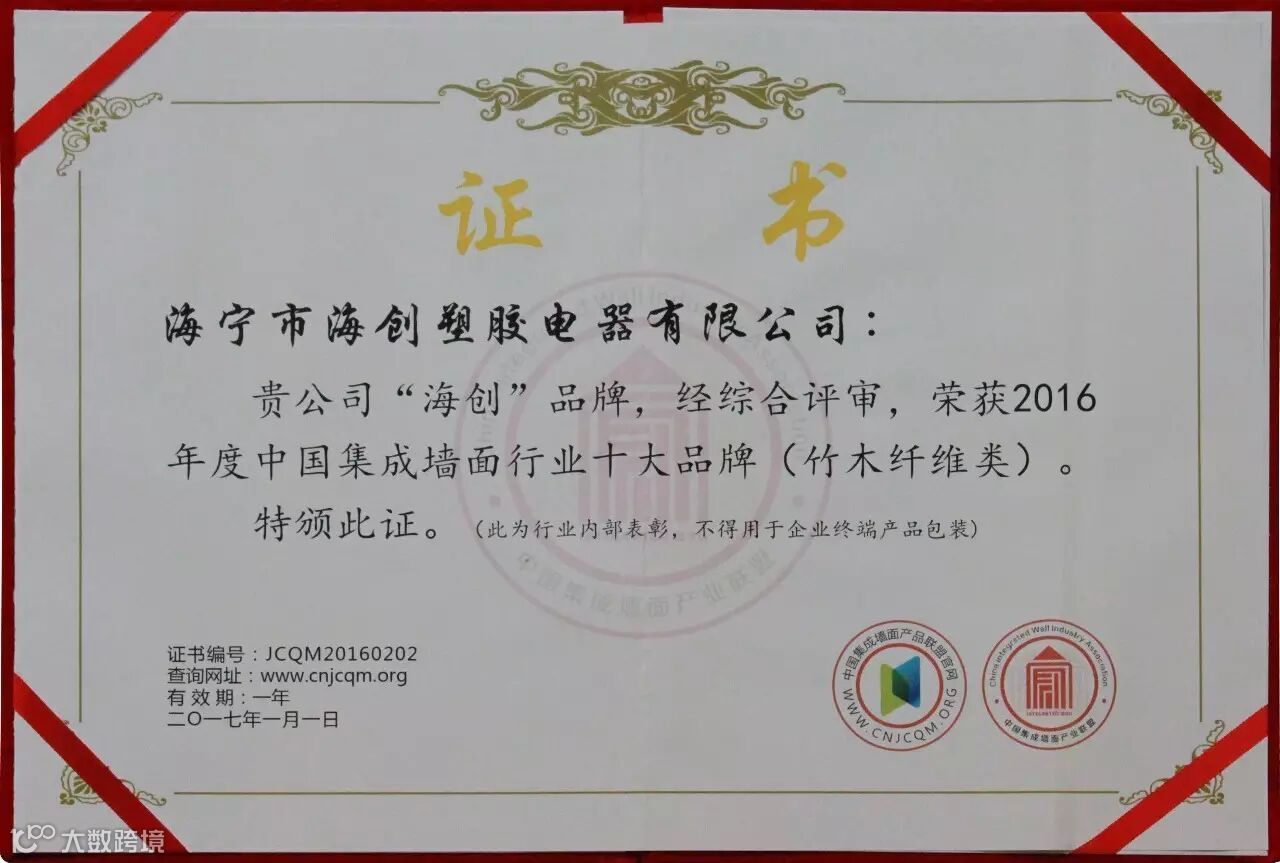 2015年,海创提出顶墙一体整体定制系统,开始着眼于竹木装饰集成墙面的研发与生产,并成功推向市场。经过一年多的发展,凭借自身的独特优势,海创竹木装饰集成墙面在各大品牌中崭露头角,不断赢得消费者青睐。此次获奖,可谓实至名归。