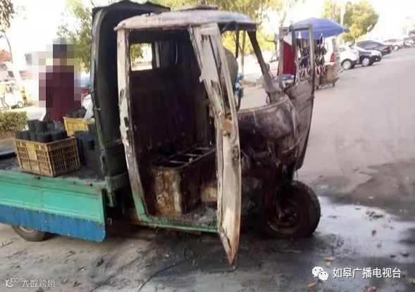 前两天,电动三轮车停放在店铺门口正在充电,车上还装满了煤球。所幸被一位卖夜宵的人及时发现,经过大家的努力,大火被成功扑灭,但此时电动三轮车驾驶室已被烧的只剩下空架了。