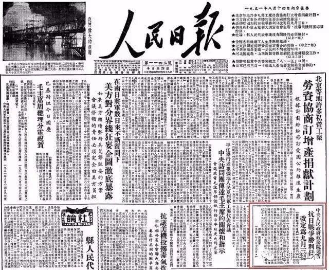 新中国成立后,曾以8月15日为抗日战争胜利日,1951年8月13日政务院发布通告,将抗日战争胜利日改定为9月3日。
