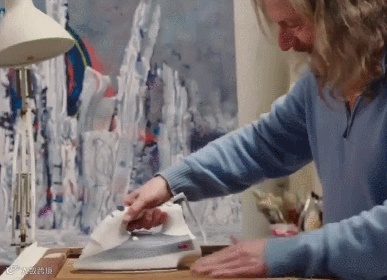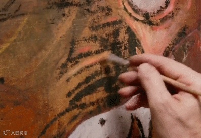 然后,他们会戴着手套,轻轻刮去画布上的颜料,根据画作的创作年代、印章的来源地等,选择一个与之有着相同背景的画家,进行艺术创作。