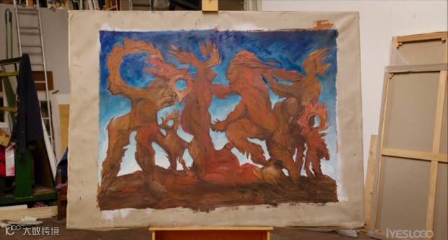 为了在成色上与画作的年代气息相吻合,他采用了自己手工研磨颜料,然后在自制的特殊烤箱里加速画面老画,形成合理断裂层,并把搜集来的灰尘撒在画框与画布的缝隙里。