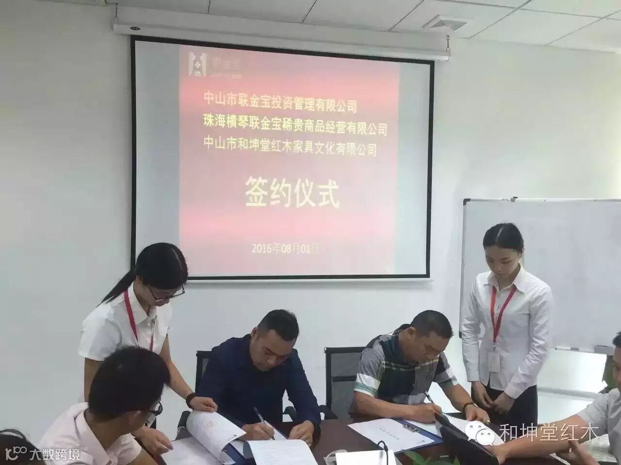 2016年8月1日,和坤堂红木与联金宝正式签订战略合作协议