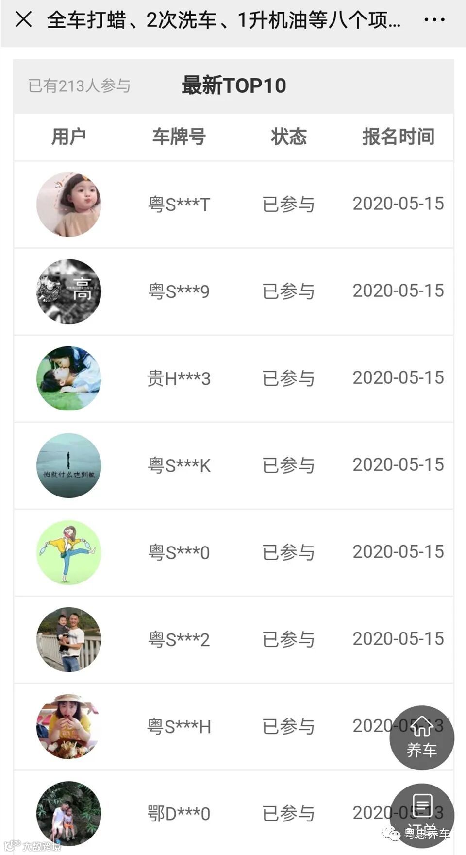1.关注粤惠养车