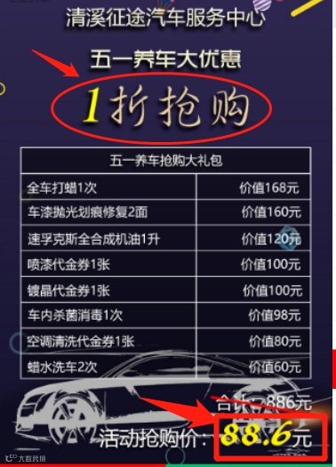 ➤原价40元的蜡水洗车