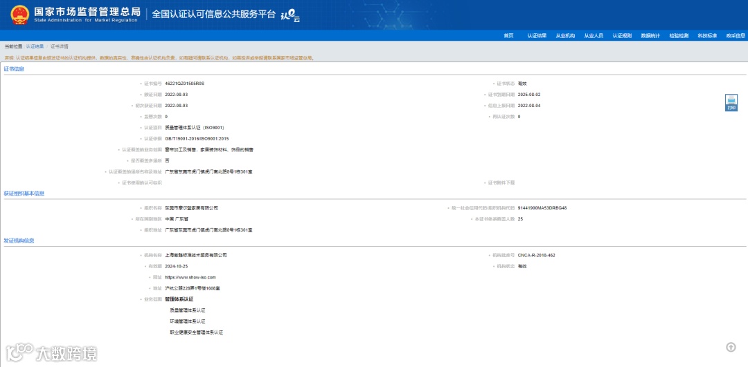 摩尔登以高效的精细化管理,严格的质量生产标准与产品研发标准,标准化的门店运营方案,顺利通过ISO9001质量管理体系认证验收,取得ISO9001质量管理体系认证!