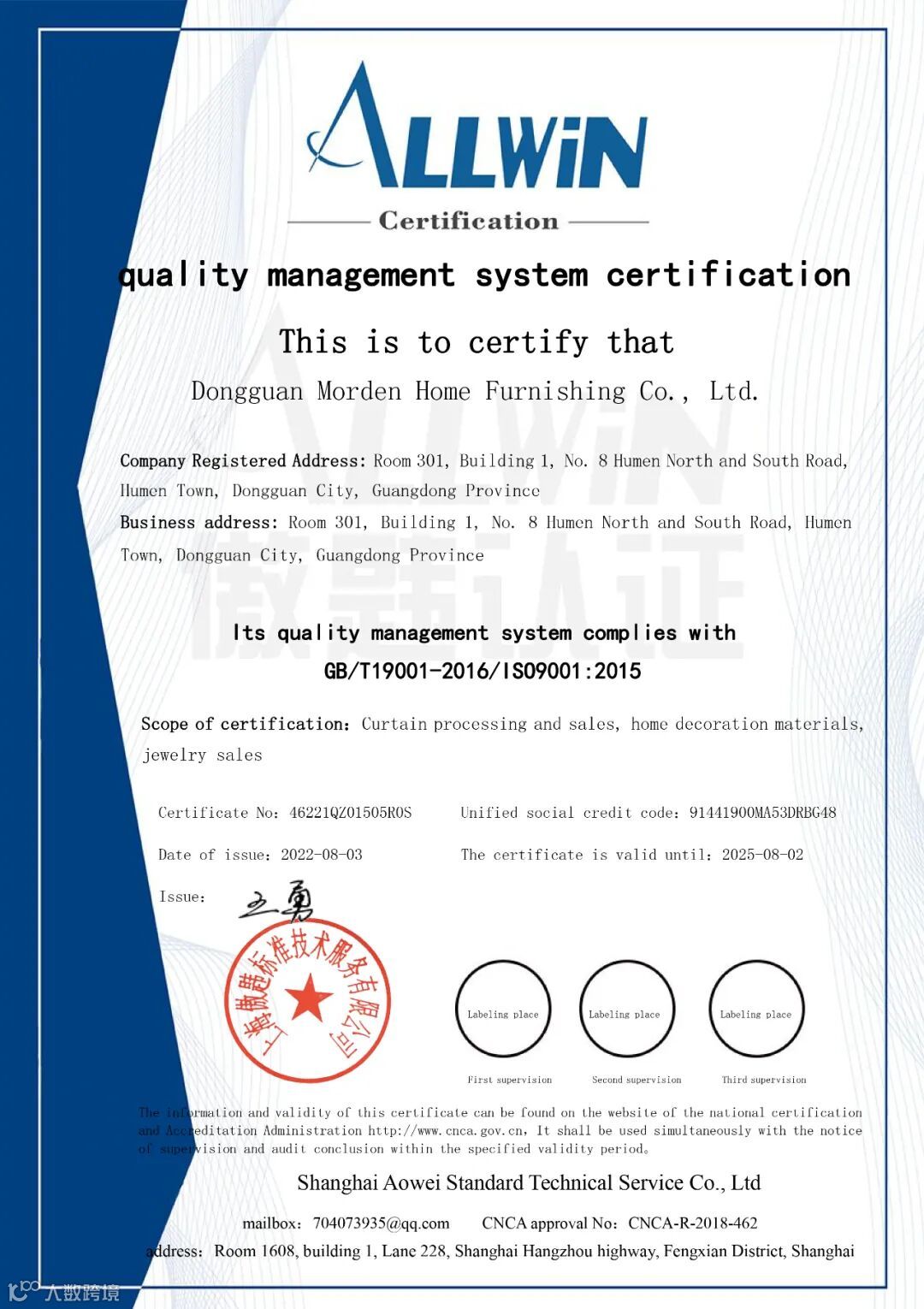对于部分工程来说,招标的条件中是需要获得这些标准认证的,取得ISO9001认证,为竞标打下基础。同时提升了窗帘产品的附加值,提高产品竞争力。