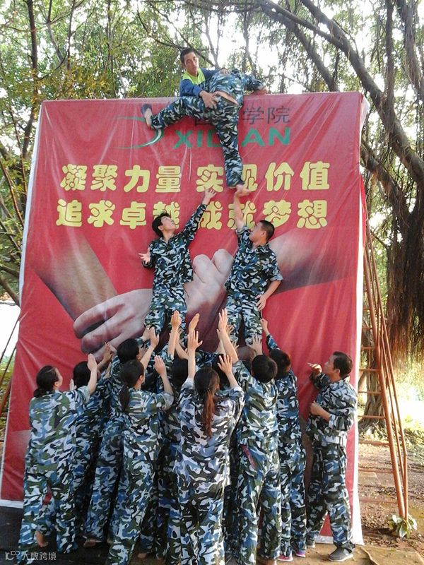 最后,迎接我们的,是一开始我们都认为不可能的毕业墙。4.5米高,不能借助任何工具,不能说一句话,这一切都让人感觉到那么的绝望。可是,如果这是一场逃生,这是公司一个生死存亡的困难,我们必须得夸过去!12分钟,我们完成了跨越,没有拉下一个伙伴,我们成功了,我们成长了!