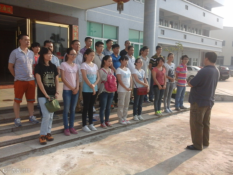 出发前,大家整齐地站在办公楼前,听从饶总作出训练指导。