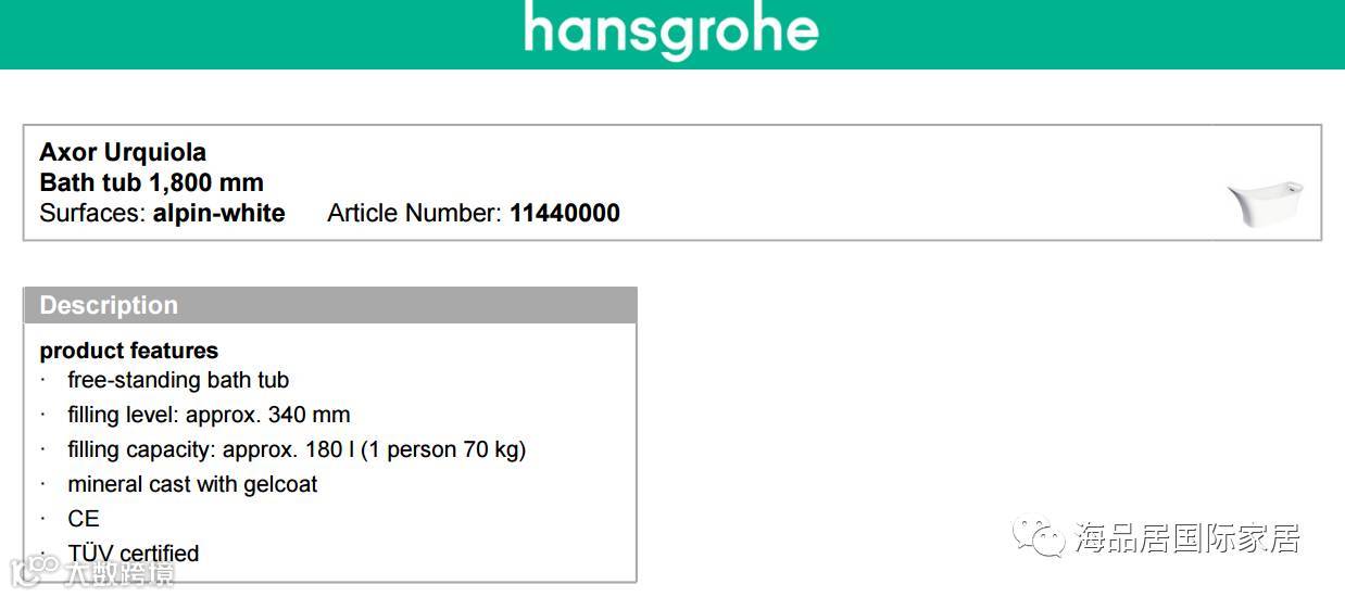 上面是汉斯格雅雅生系列浴缸的材料说明,再来看看我们材料,