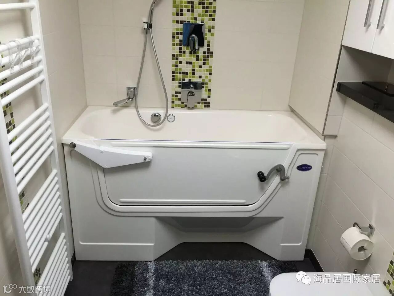 今天海品居隆重给大家介绍一款浴缸,这款浴可以同时满足上述三类人群的沐浴需求,而且在最大程度上保证安全和舒适,即使是轮椅移动群体,也可以轻松独立完成沐浴。