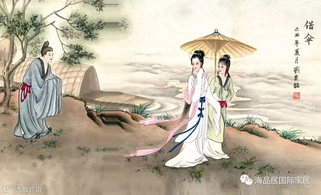 在中国古代,有一个习俗,就是赴京赶考或做官上任,背上包袱里除书本外,一定会带一把红油纸伞,即“包袱伞”,又称“保福伞”,预祝路途平安、高中状元。在中国古老的神话故事中,流传得深入人心的,以伞为媒的爱情故事“白蛇传”当属其中之首。许仙那把书生味十足的油纸伞撑上了白娘子头顶的空间,由是演绎了一曲泣鬼神动天地传千古的爱情故事来,许仙没钱没权没家产,白娘子看重的是他油纸伞内的一腔温情与爱怜,这是伞文化的真情之爱。