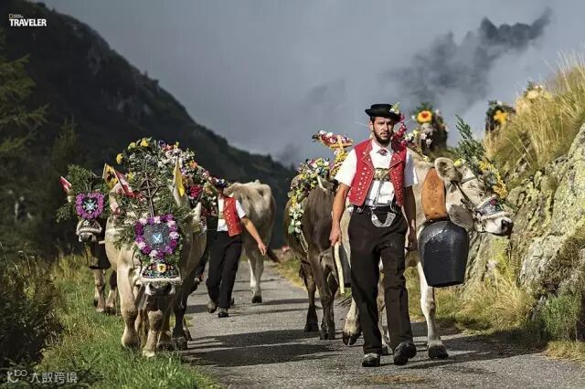 瑞士乌里州在每年九、十月份会举办“归牛节”( Désalpe),身着传统服饰的瑞士牧民和打扮得花枝招展的奶牛一起回到山脚,与人们分享高山农家物品。