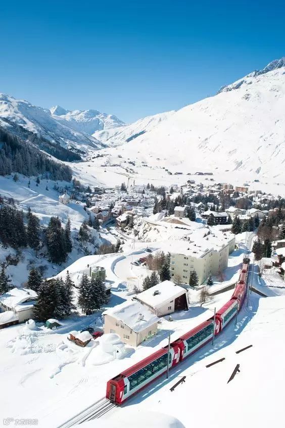 你还可以乘坐瑞士境内的观光列车——冰川快车,体验这个冰雪国家的美景。