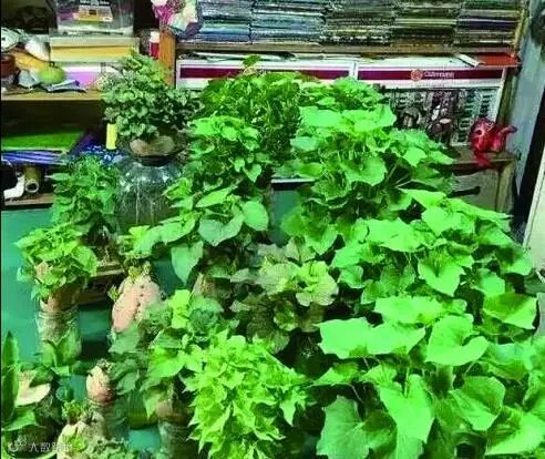 如果您会一点造型设计,便可以来个红薯盆景,剪下的叶子可以炒菜吃。