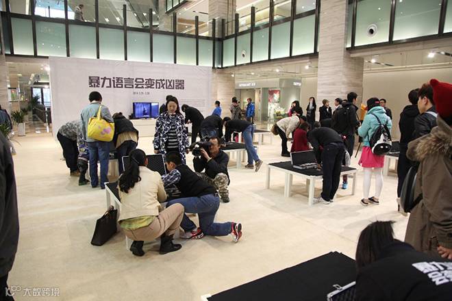 这些词语武器在沈阳的一个人流攒动的购物中心里以互动的形式展出。购物者和路人通过触摸屏和现场的平板电脑参与词语武器的互动。为期两天的活动吸引了超过600人参与其中。