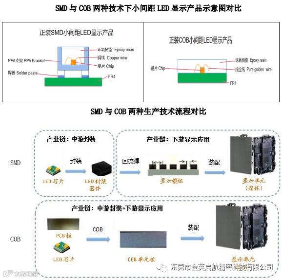 B、LED 显示面板制备技术 SMD 和 COB 的技术对比