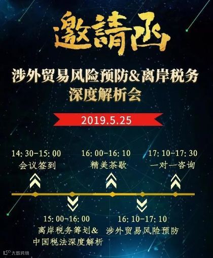 5月25日,英凯教育将携手广东广健律师事务所&森迅海外举办“涉外贸易风险预防&离岸税务”深度解析会。活动现场将有森迅海外合伙人为大家深度解读:当前的外贸经济形势下,外贸行业在资金筹划和税务筹划方面所面临的现状和转型方向。