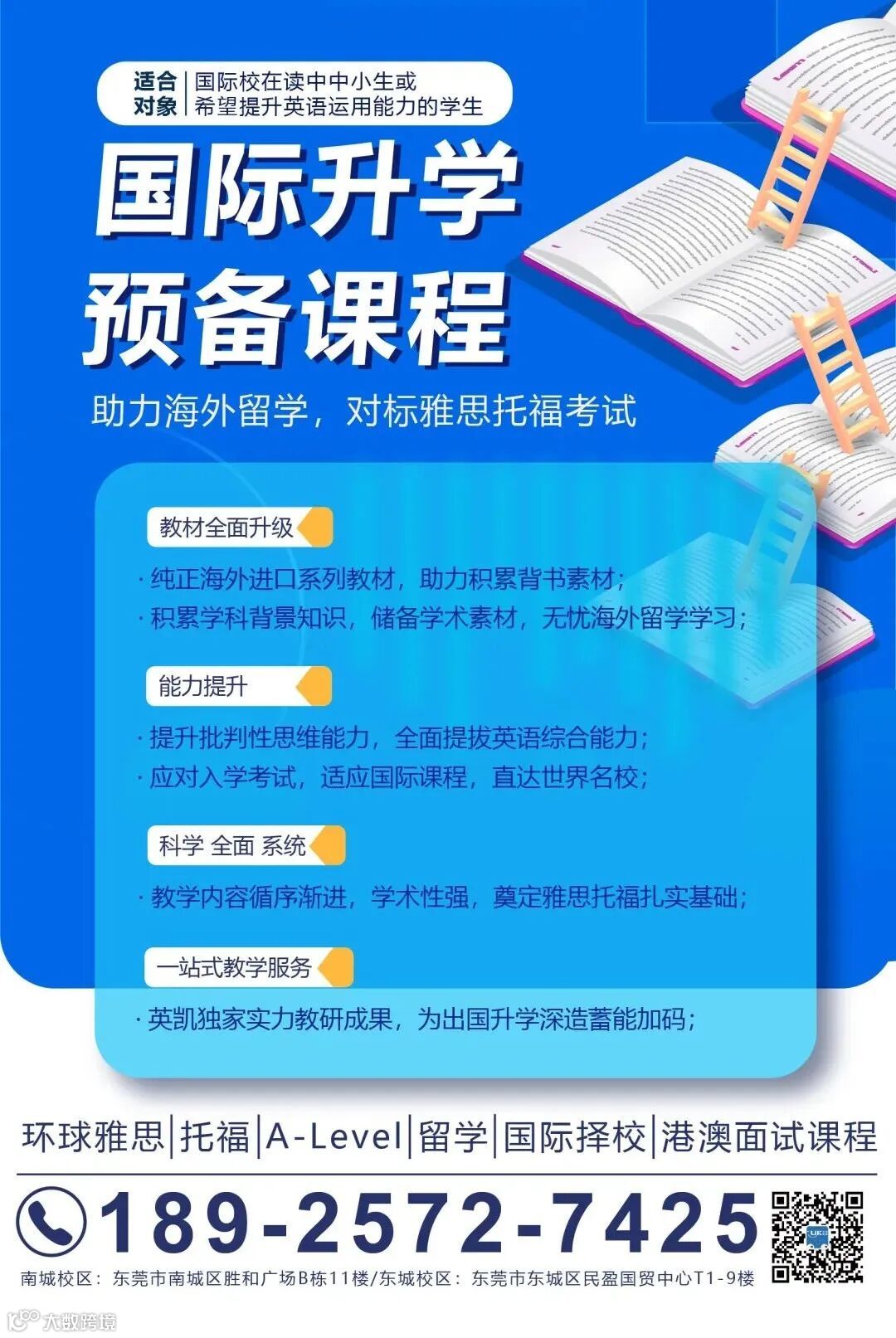 在东莞英凯教育,一站解决语言培训、国际课程、留学咨询及留学相关考试。