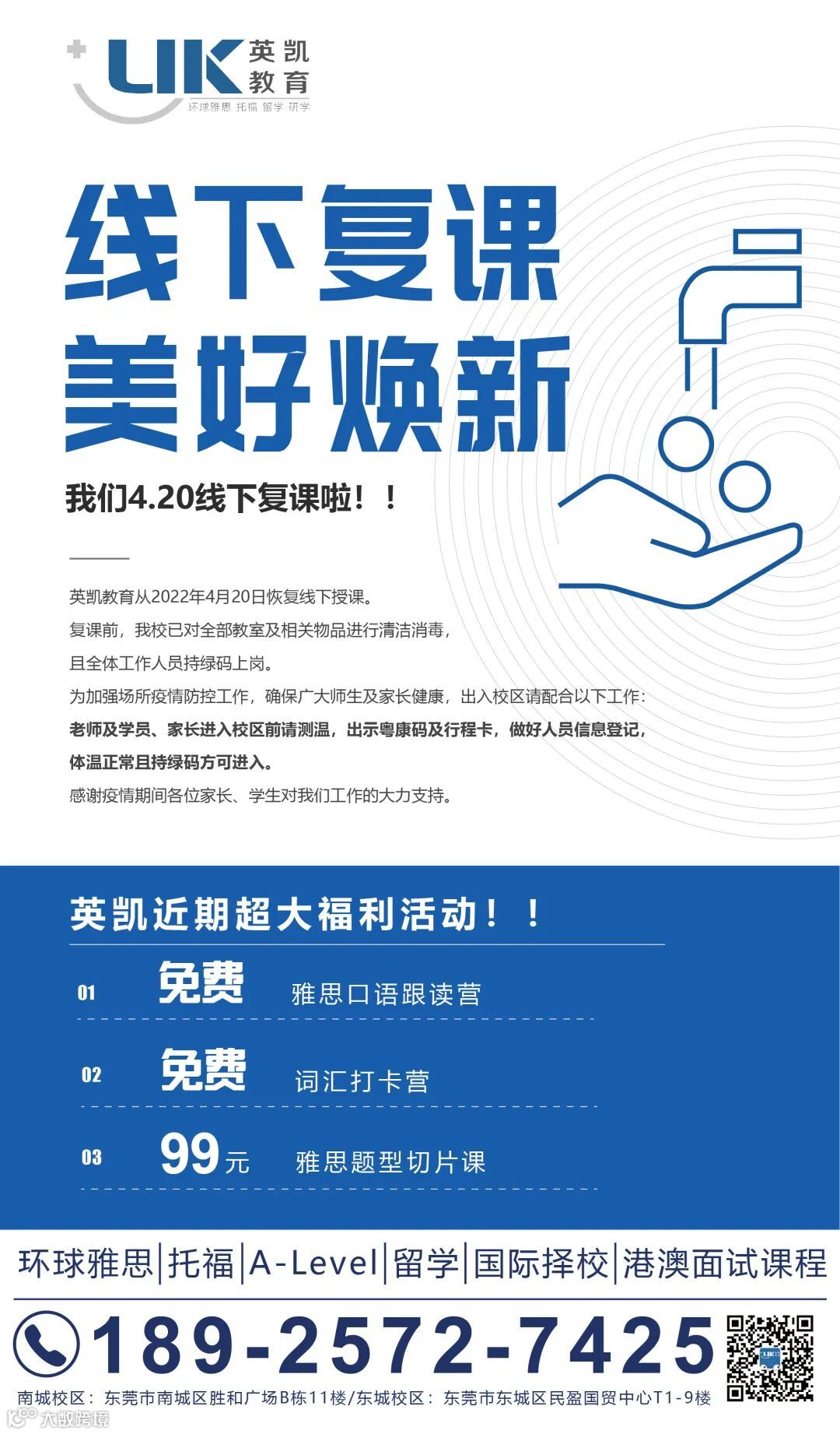 4月20日起,东莞英凯教育正式恢复线下课程!