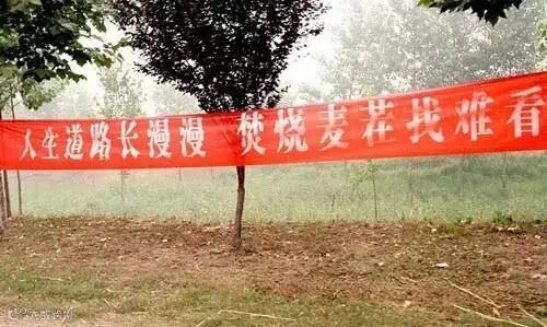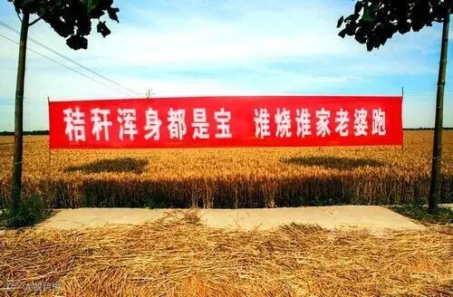 标语虽雷人,笑归笑,还是提醒各位麦农,烧麦秆不光污染空气,还容易引发火灾,爱护环境,人人有责!确保“不着一把火,不冒一处烟,不黑一块田”,为咱共同生存的家园。