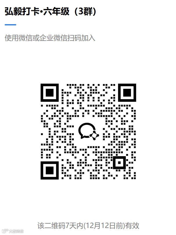 本轮五、六年级打卡已结束,后续将继续组织线下打卡。如有意向参加的家长请加入打卡群,并关注公众号后续内容。