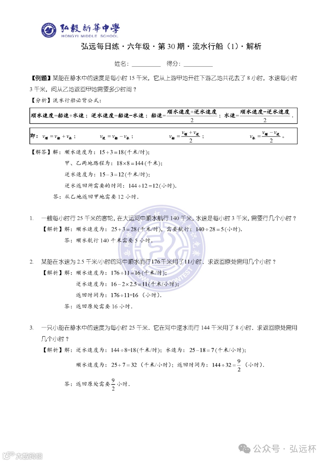 弘远每日练·六年级·第30期·解析