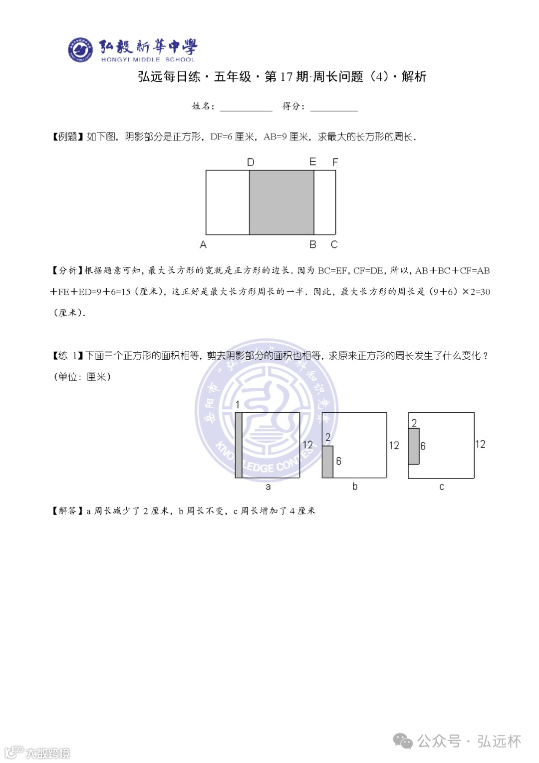 弘远每日练·五年级·第17期·解析