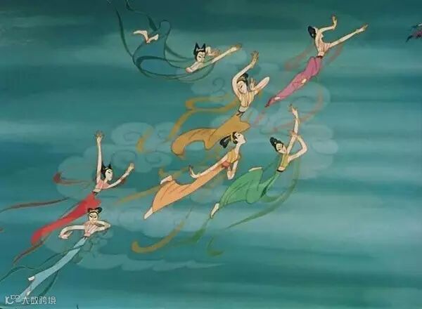 从衣服的飘带,到动作姿态,再到云纹,都是根据敦煌莫高窟的飞天壁画创作出来的。