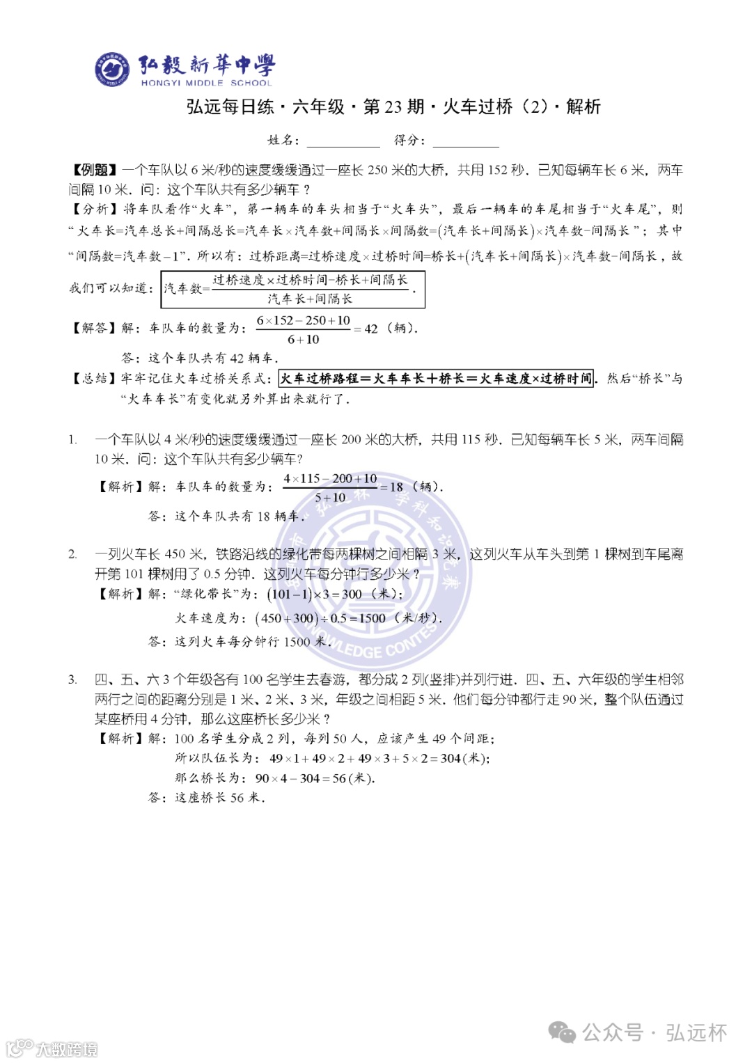 弘远每日练·六年级·第23期·解析