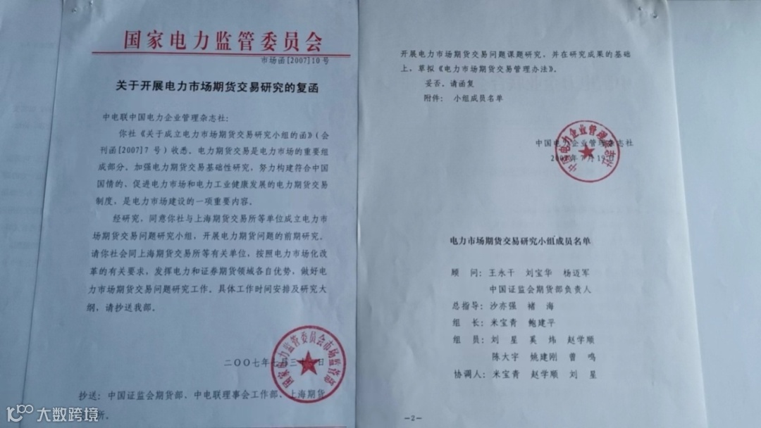 会后,我们向电监会市场监管部申报成立“电力市场期货交易研究小组”,很快得到批复,并开始开展工作。小组领导成员中,褚玦海时任期交所总经理助理,鲍建平时任期交所发展研究中心主任。几年后,刘宝华身陷囹圄,杨迈军因故被免职,但电力期货市场已经初见眉目。